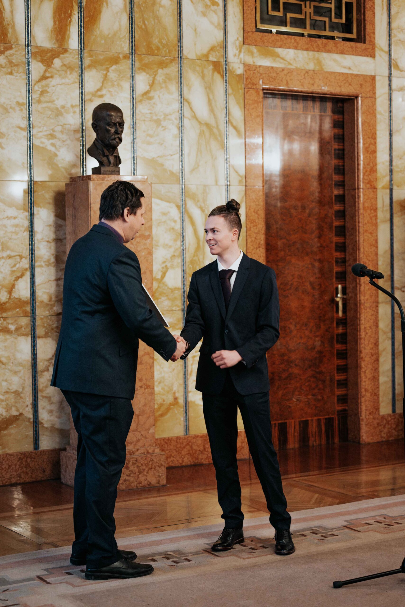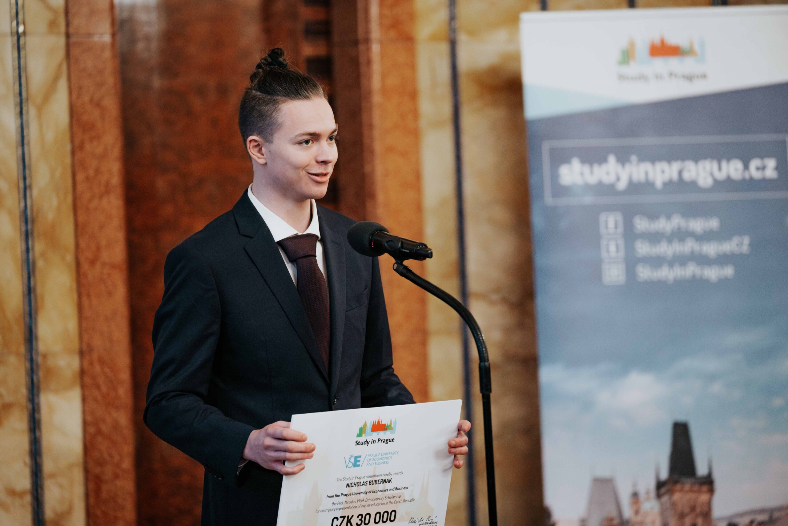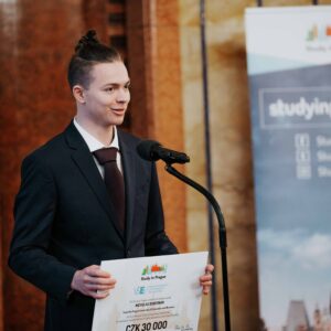 The award was presented by Jakub Fischer, Dean of the Faculty of Informatics and Statistics, during a joint event of the Study in Prague consortium at the Residence of the Mayor of Prague, where representatives from other leading Prague universities also honored their scholarship recipients.